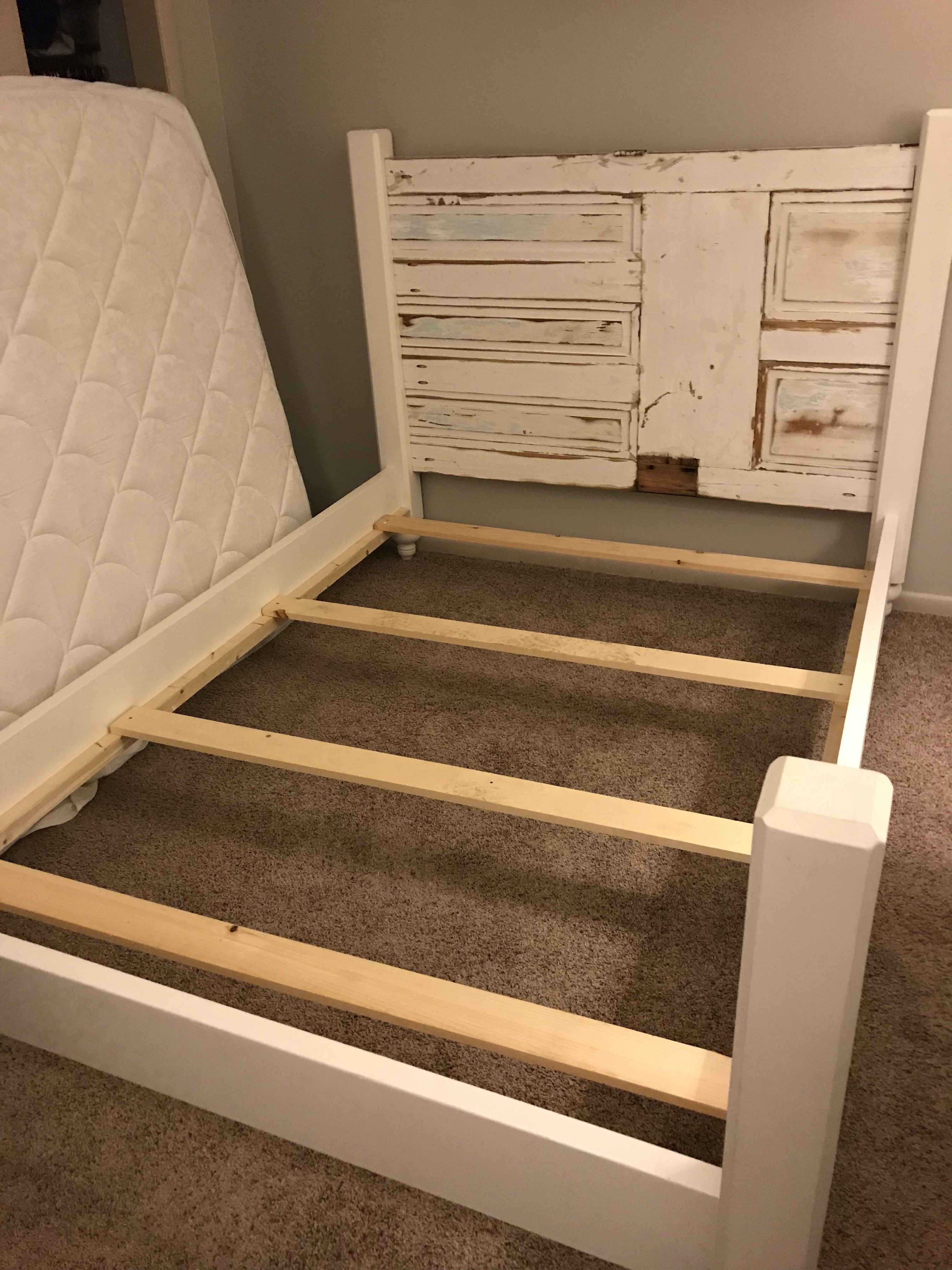 Which now brings me to our new Queen size bed. Back in Fall of 2018 I bought a door which once had panel lock for a skeleton key. I loved it! But it was chippy and needed sanding.