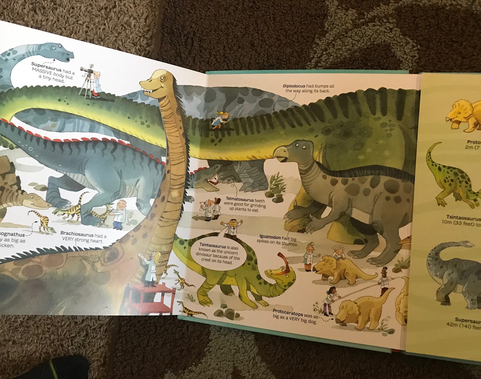 My oldest is all about dinosaurs! Sometimes he thinks he’s a dinosaur 😕🙄😔 I got this one for him when he was 4 and he still loves it at 6! The Big Book of Dinosaurs is apart of the Big Book collection- Trains, Trucks, Tractors, Bugs, Animals, Sea Creatures, the Body and Rocket Ships. As well as which I didn’t show here but are also my favorite- Stars and Planets and Colors. Seriously, I have never seen books like these! Here is a great video video to see some of them