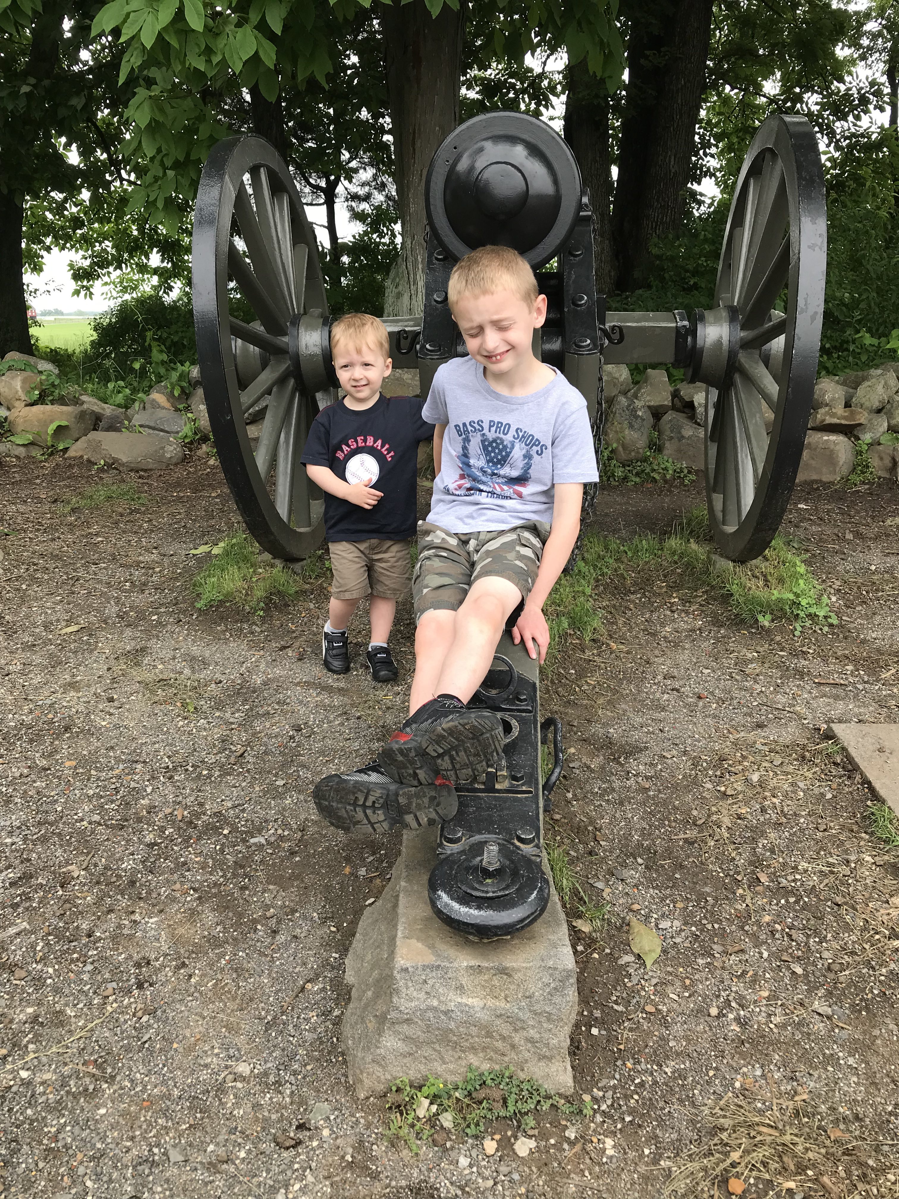 Needless to say this was my oldest and my husband’s favorite. It’s normally, mine too but I was busy chasing after the toddler so he didn’t hurt himself! This is a big stopping off point on the battlefield tour and you are free to climb at your own risk and heart’s desire!
